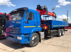 Бортовые автомобили с КМУ / PALFINGER PK23500А с поворотными передними опорами на шасси КАМАЗ-65117-3010-48