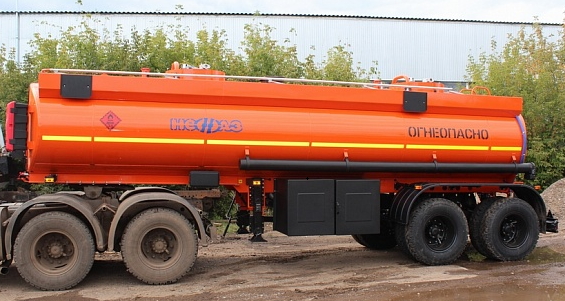 Полуприцеп цистерна 2-х осный, без насоса, без подготовки под нижний налив, без подготовки под рекуперацию паров, 2 отсека, ССУ=1450-1540, оси НЕФАЗ, рессорная подвеска, ёмкость 16600 л.